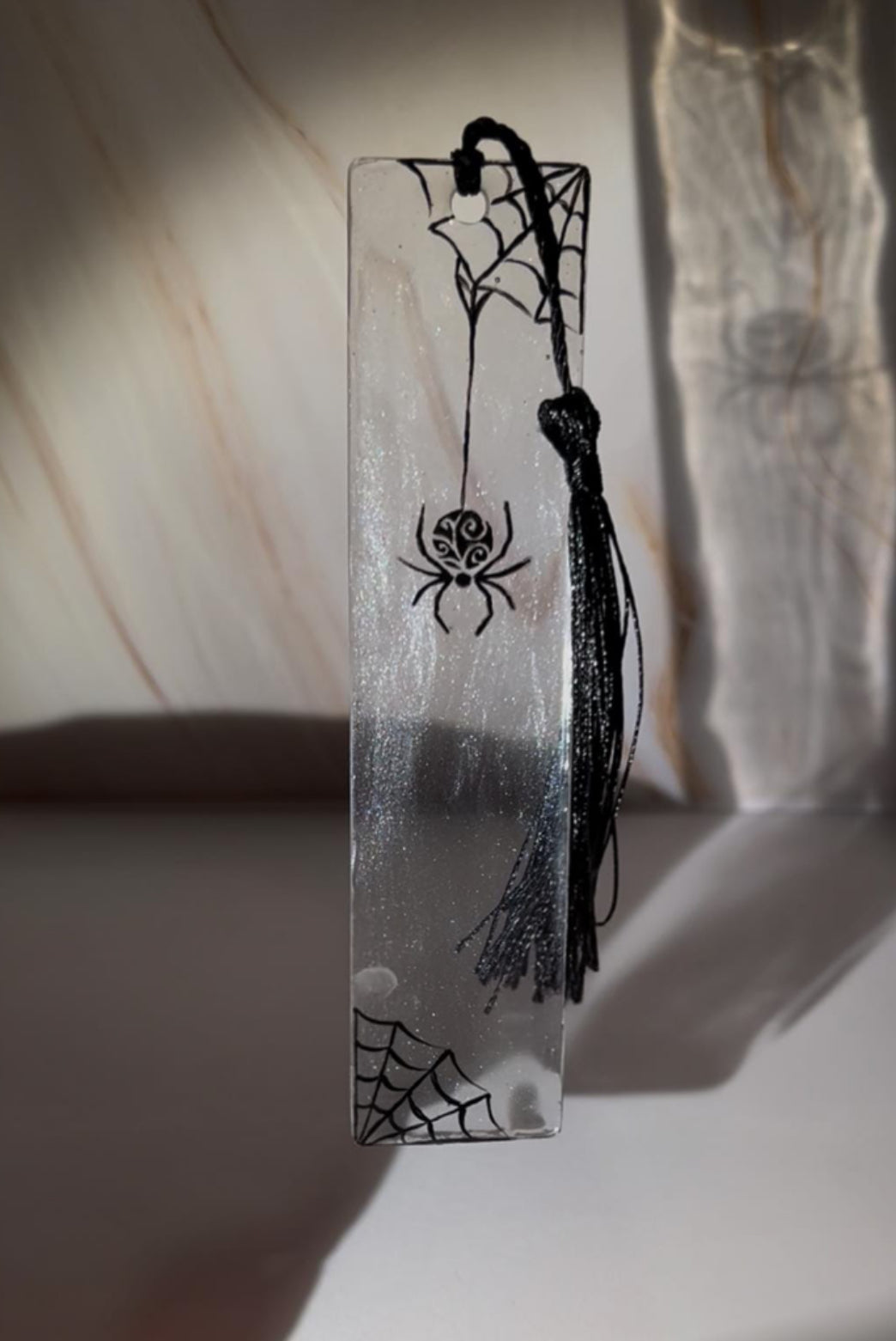 Marque page d'Halloween avec une petite araignée peinte à la main.